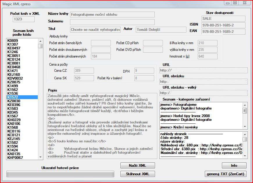 Rozšiřujeme nabídku produktů z řad software. Jedná se o malou aplikaci pro zpracování XML dat ze serveru poskytovatele pro potřeby shopu ú obchodu ZenCart . Aplikace už podle názvu dává vědět že se jedná o práci s daty Computer Press a.s. . Magic XML cpress se stará o načtení dat XML ze serveru Computer Press a vytvoření txt souboru pro obchod ZenCart.